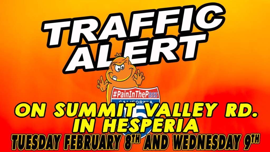 HESPERIA, CA. (Pain In The Pass) >> On Tuesday February 8th and Wednesday February 9, 2022 on Summit Valley Road between 8am and 5pm* each day. The closure will be between