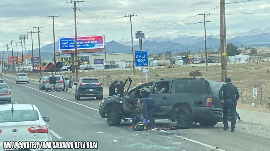 HESPERIA, CA. (Pain In The Pass) >> A two vehicle crash on Summit Valley Road in Hesperia Friday afternoon. California Highway Patrol and San Bernardino County Fire Department were called to