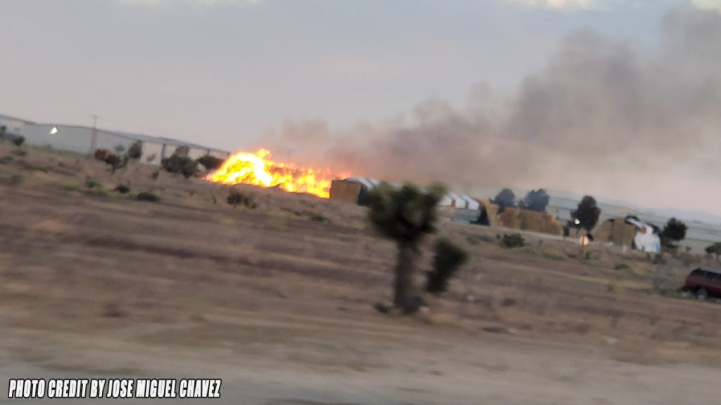 HESPERIA, CA. (Pain In The Pass) >> A fire that broke out in Hesperia destroyed over 100 bales of hay Saturday morning. On May 29, 2021, about 5:45am San Bernardino