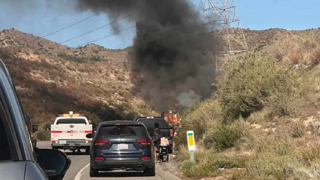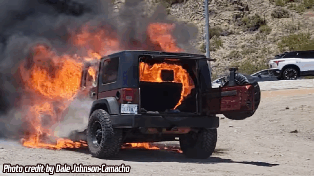 HESPERIA, CA. (Pain In The Pass) >> A stretch of Highway 138 was closed after a SUV caught fire on Wednesday afternoon. (Photo above is credit by Abby Kristine.) According