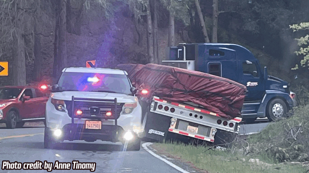 PHELAN, CA. (Pain In The Pass) >> For the second time in less than a month a semi tractor-trailer was trying to make a U-turn on Highway 138 crossing directly