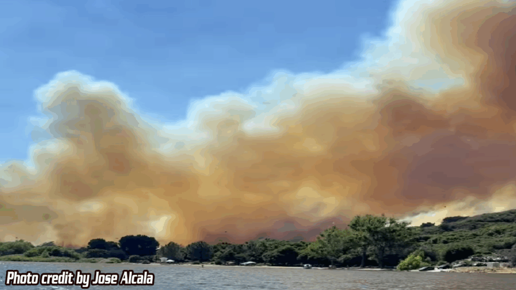 SILVERWOOD LAKE, CA. (Pain In The Pass) >> A large brush fire erupted inside Silverwood Lake State Recreation Area Saturday afternoon. The blaze was reported around 3:50pm June 28, 2025,
