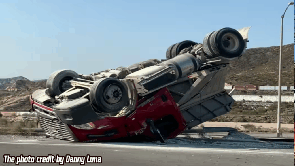 PHELAN, CA. (Pain In The Pass) >> A semi-truck driver escaped major injuries Monday morning when the truck he was driving overturned on Highway 138. The accident happened just after