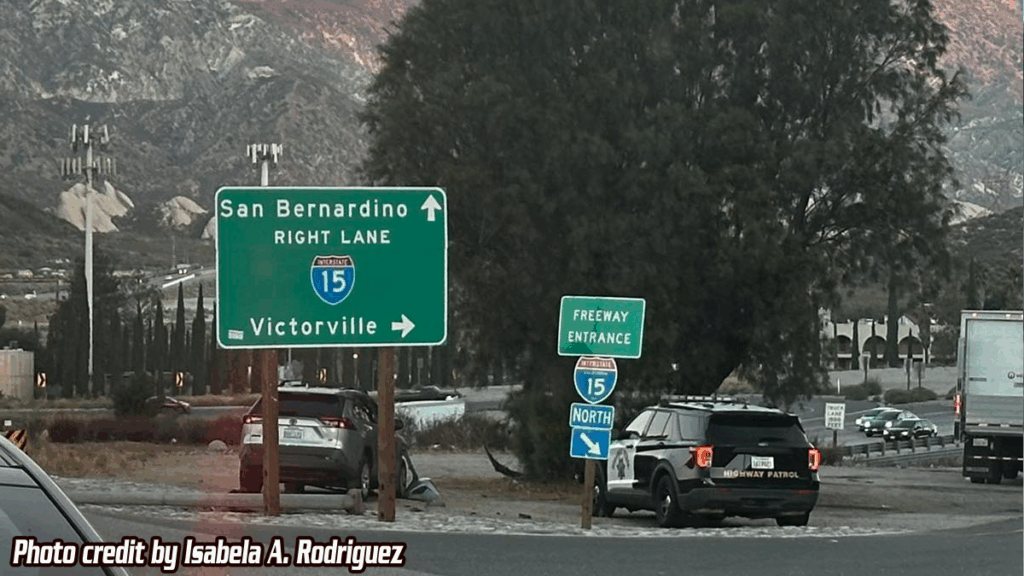 CAJON PASS, CA. (Pain In The Pass) >> A traffic collision occurred on Highway 138 at the 15 Freeway Monday morning, resulting in a vehicle running off the road and
