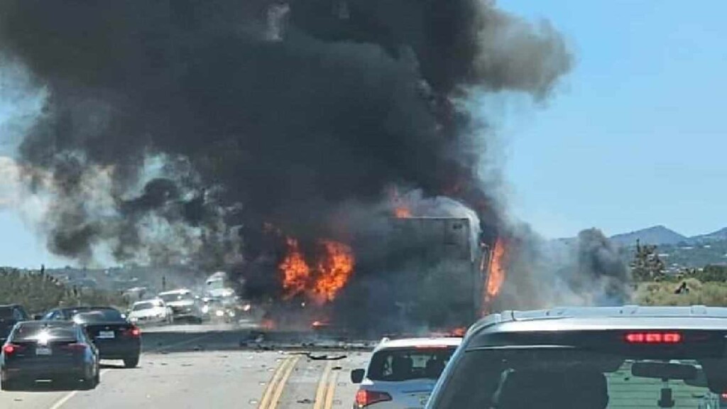 LLANO, CA. (Pain In The Pass) >> Multiple crews worked to extinguish a semi on fire on Highway 138 Monday morning. According to the California Highway Patrol, the incident occurred