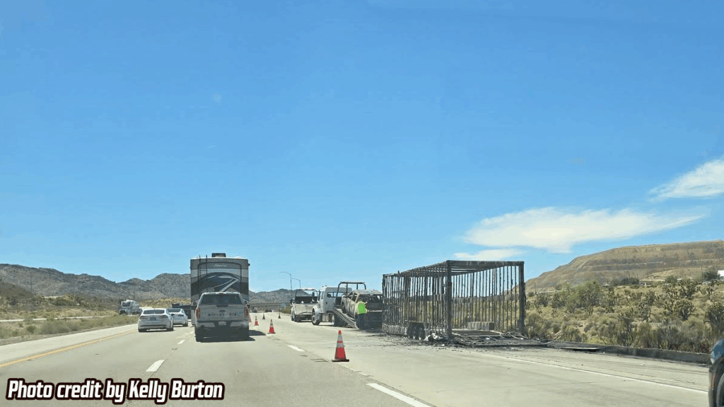 MOUNTAIN PASS, CA. (Pain In The Pass) >> What started as a semi-truck fire has turned into a brush in the Mojave Desert, leading to the temporary lane closure of a