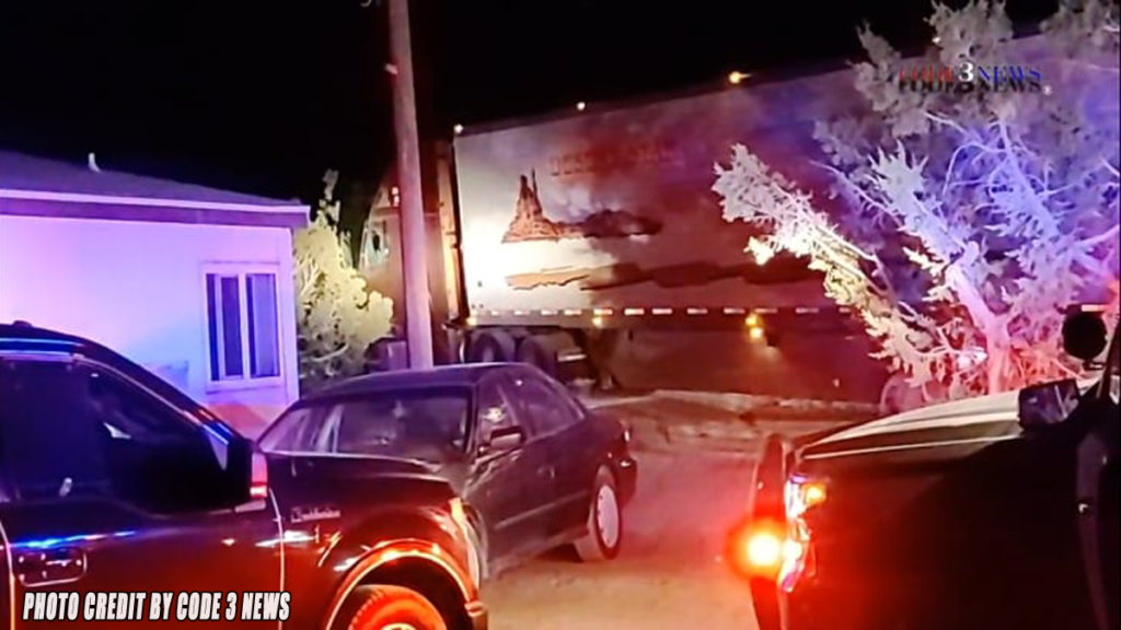 PHELAN, CA. ( Pain In The Pass) >> A police pursuit in Riverside ended with a stolen big rig stuck off of a dirt road in Phelan with the driver