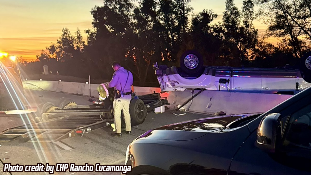 RANCHO CUCAMONGA, CA. (Pain In The Pass) >> Emergency crews responded to a rollover crash on southbound lanes of Interstate 15 in Rancho Cucamonga on Thursday. California Highway Patrol and