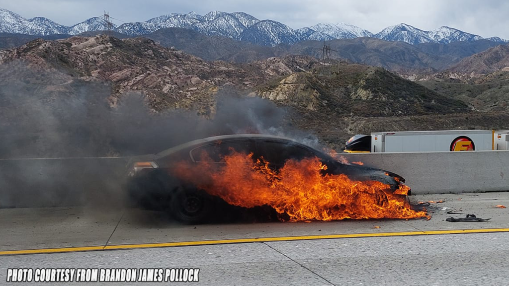 CAJON PASS, CA. (Pain In The Pass) >> A car caught fire on northbound Interstate 15 in the Cajon Pass Saturday afternoon. California Highway Patrol, San Bernardino County Fire Department,