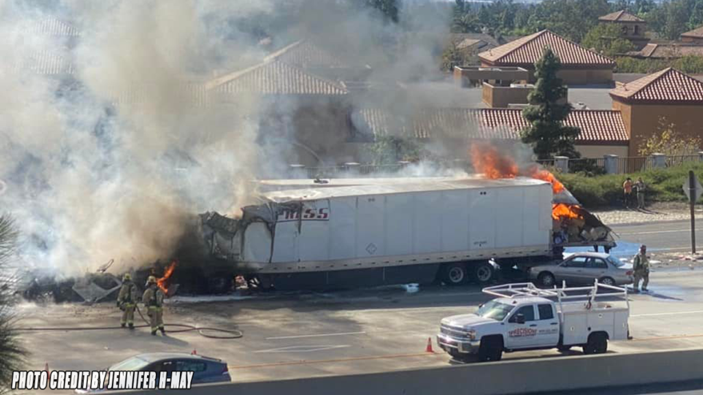 RANCHO CUCAMONGA, CA. (Pain In The Pass) >> The eastbound lanes of the 210 Freeway at the Milliken Avenue onramp were closed after two big rigs caught fire following a