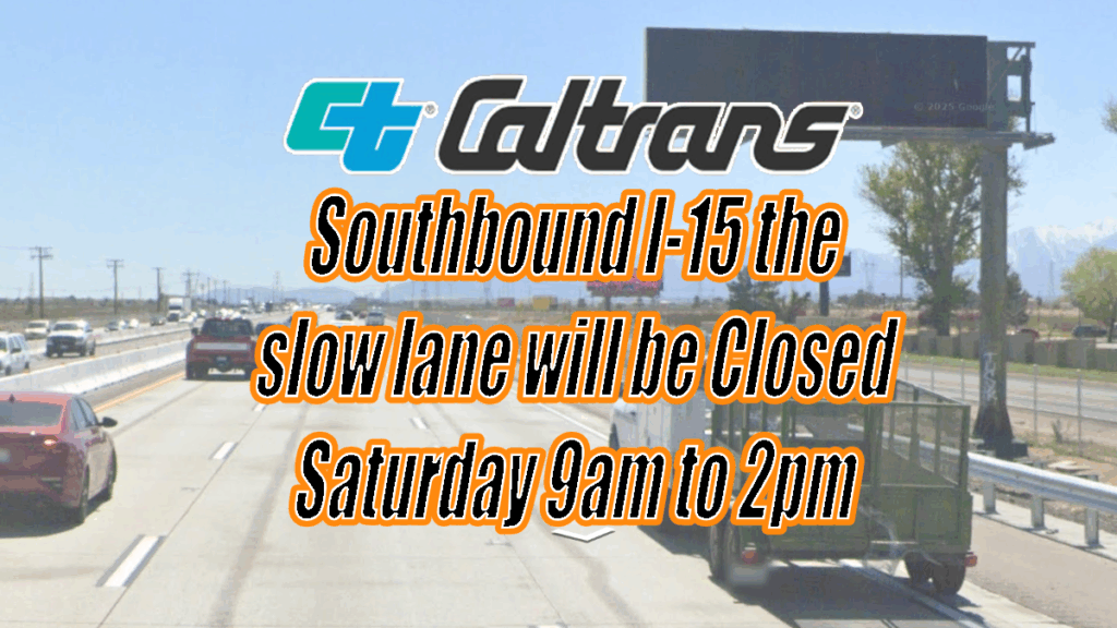 HESPERIA, CA. (Pain In The Pass) >> New overhead electronic sign will close one lane Saturday morning on Southbound Interstate 15 in Hesperia. Metro Specialized Sign crews will perform sign
